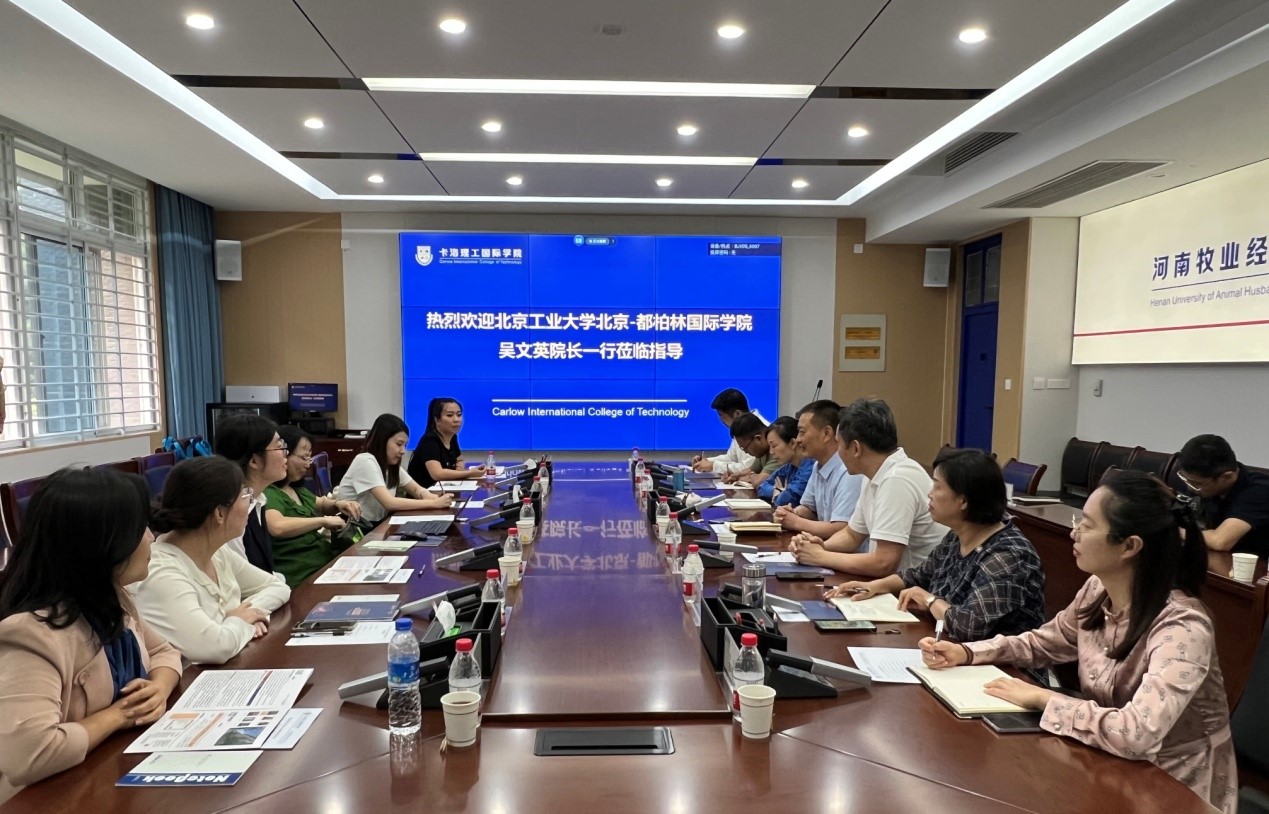 近日,北京工业大学北京-都柏林国际学院院长吴文英教授一行7人到新葡萄官网调研交流。卡洛理工国际学院全体工作人员参加了调研交流会。会议由国际交流与合作处处长、卡洛理工国际学院常务副院长赵建华主持。