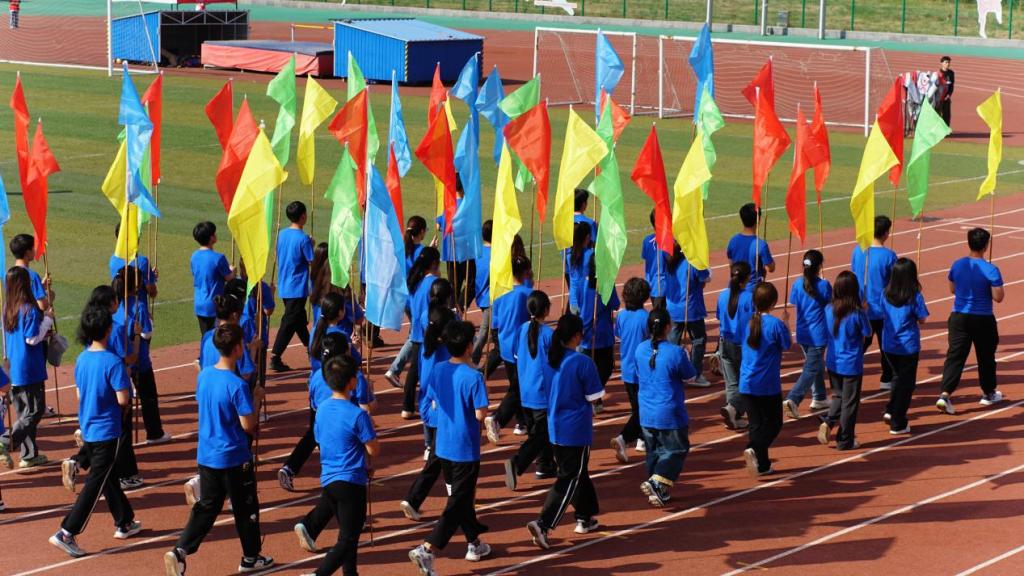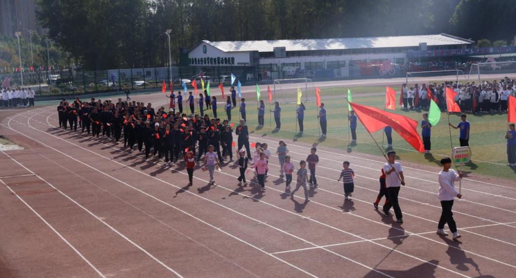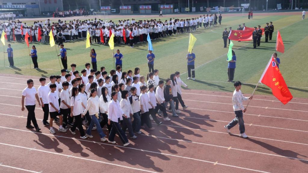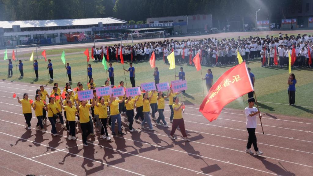 艳阳高照,鲜艳的五星红旗冉冉升起。田径场上,彩旗飘扬,人声鼎沸,气势如虹。在激昂的运动员进行曲中,国旗队、院旗队、彩旗队、学生班级方队、乐普生集团方队及教工方队迈着整齐划一的步伐相继入场。