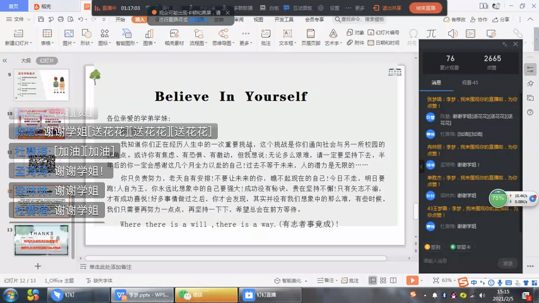 此次线上讲座及分享交流活动激发了同学们的学习热情,增强了大家备考的决心和信心,促进了外国语学院学风建设,也为做好毕业生就业指导工作垫定了良好基础。(李昀/文 图)
