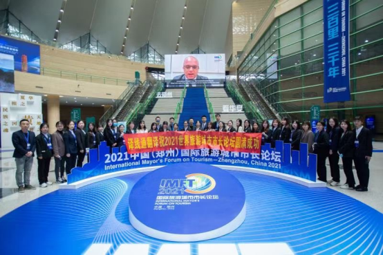 近日,以“市场繁荣、科技创新提升城市旅游竞争力”为主题的2021中国(郑州)国际旅游城市市长论坛在郑州隆重举行,来自30多个国家、地区和国际组织的400余位代表嘉宾齐聚郑州,共话后疫情时代全球旅游业的复苏与振兴。新葡萄官网外国语学院2018级商英01班学生韩佳伟、商英02班学生付晶晶在组委会志愿者选拔中脱颖而出,以外宾接待陪同志愿者的身份全程参与此次论坛,为嘉宾提供翻译服务。