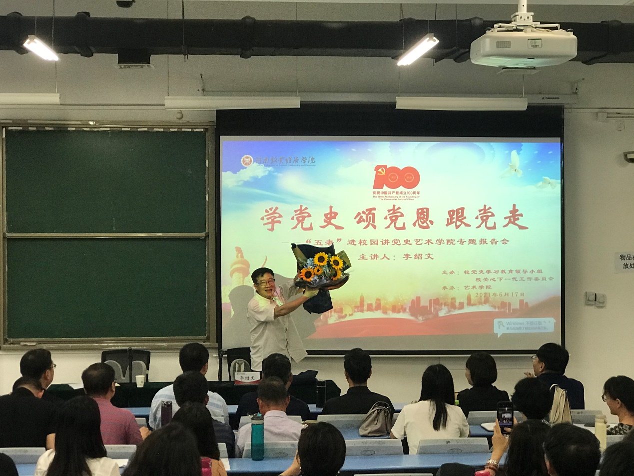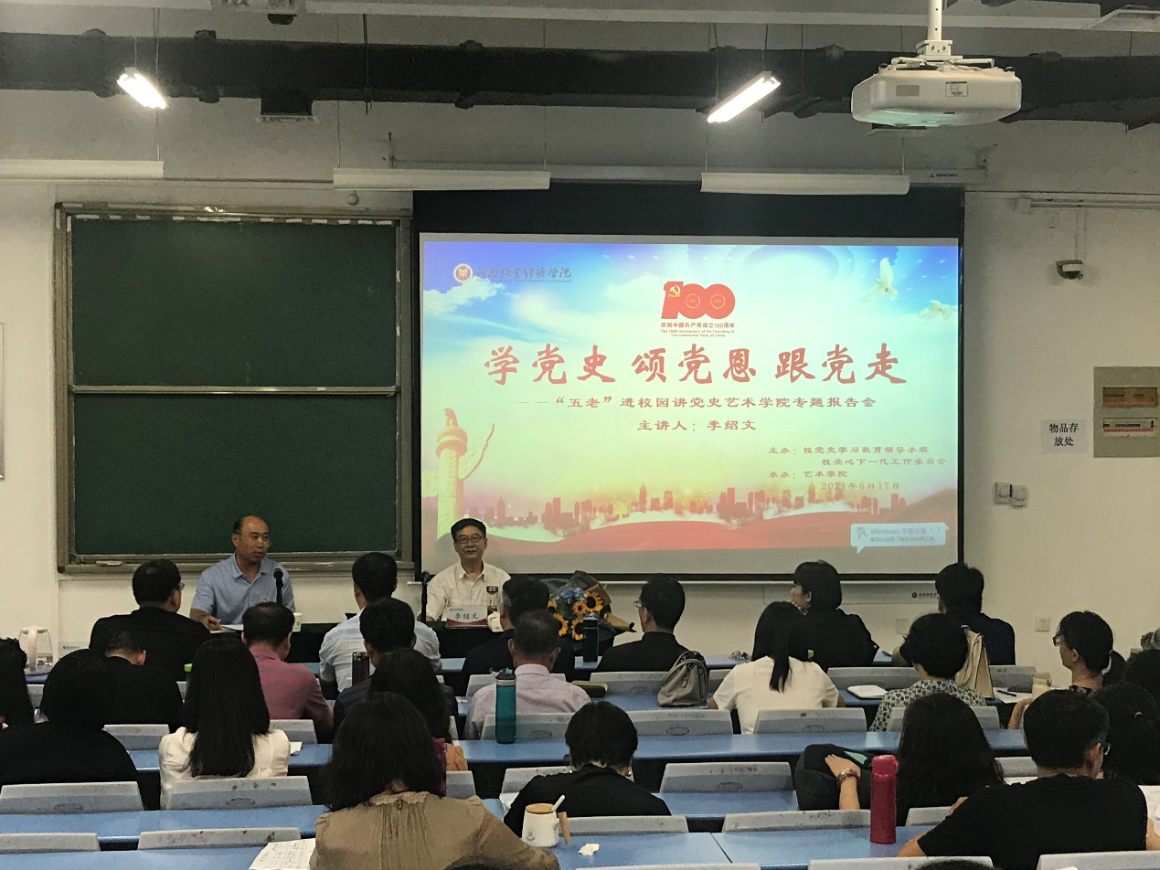 近日,艺术学院党委邀请新葡萄官网原党委副书记李绍文教授,开展“学党史、颂党恩、跟党走”专题报告会。艺术学院全体教师,学生党员代表和入党积极分子代表共计160余人参加报告会。报告会由艺术学院党委书记王在钦主持。