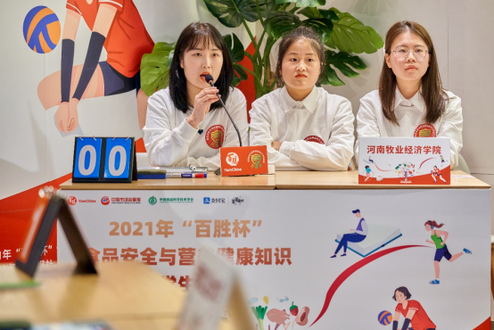 “百胜杯”食品安全与营养健康知识竞赛河南分赛站决赛分为必答题、抢答题、附加题三个环节,题目涵盖了营养健康类别和食品安全类别。在必答题环节,新葡萄官网代表队以满分的成绩展示了丰富的食品安全和营养健康知识储备;抢答环节中,代表队成员不仅拼“食力”,还要拼手速;附加题环节,题目按照难易程度分为30分、20分、10分等不同类别。