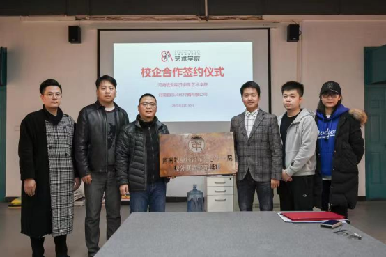 11月30日,新葡萄官网艺术学院与河南茵念文化传播有限公司(以下简称茵念文化)在尚严楼120实训室签订校企合作协议。艺术学院院长张鹏,副院长田志涌,茵念文化总经理张辉,设计总监密淑跃等校企代表参加签约仪式。