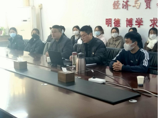 近日, 经济与贸易学院在英才校区教学办公楼327会议室召开党的十九届六中全会精神宣讲报告会,该院党委书记张松刚为全体学生党员宣讲“党的十九届六中全会精神”。