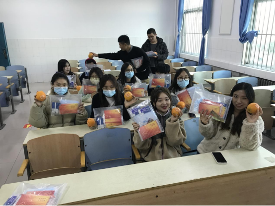 主题班会上,工商管理学院为全院备考学子送上了500余份考研“暖心大礼包”:一个雕刻“考研必过 心想事成 新葡萄8883官网AMG工商管理学院2022届考研学生留念”的精美竹刻书签,十个一次性独立包装医用口罩,十个定制版“考研必过 逢考必过”红色喜庆连中三元口罩,十包独立包装消毒湿巾,一个平均5两多重的贴着“脐开得胜,心想事橙”精美标识的考研祝福版赣南脐橙,借脐橙的谐音祝福考研学子都能“旗开得胜”。
