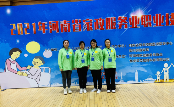 家政学专业师生自10月份就开始积极准备郑州市选拔赛,在缺乏实操条件、时间紧张、疫情反扑的情况下,努力克服重重困难,利用课余时间到校外专业家政培训机构实践学习,刻苦练习。师生并肩备赛,互相鼓励,互相帮助,最终通过市级选拔赛晋级省赛。在省赛中,与来自全省18个地市近百家家政企业和30多所高校及职业院校推荐的优秀选手同台角逐、切磋竞技,最终取得了良好的成绩。