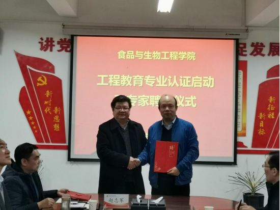 食品与生物工程学院党委书记赵安勇宣读了《食品与生物工程学院关于成立工程教育认证工作专班的决定》,对工程教育专业认证工作进行了详细的时间节点安排。他希望相关教师要充分认识工程教育专业认证的重要性,严格按照工作任务的要求,精心筹划,同心协力,把工程教育认证工作做实、做细、做精,争取在最短时间内,通过工程教育专业认证。