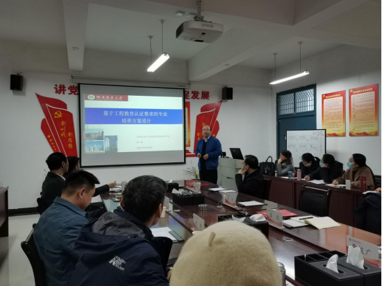 聘任仪式后,张剑教授以“基于工程教育认证要求的专业培养方案设计”为题,向与会人员作了专题报告。他从何为工程教育专业认证、培养目标与毕业要求、课程体系、教学大纲、教学管理制度等五个方面详细解读了工程教育专业认证的标准和关键点。