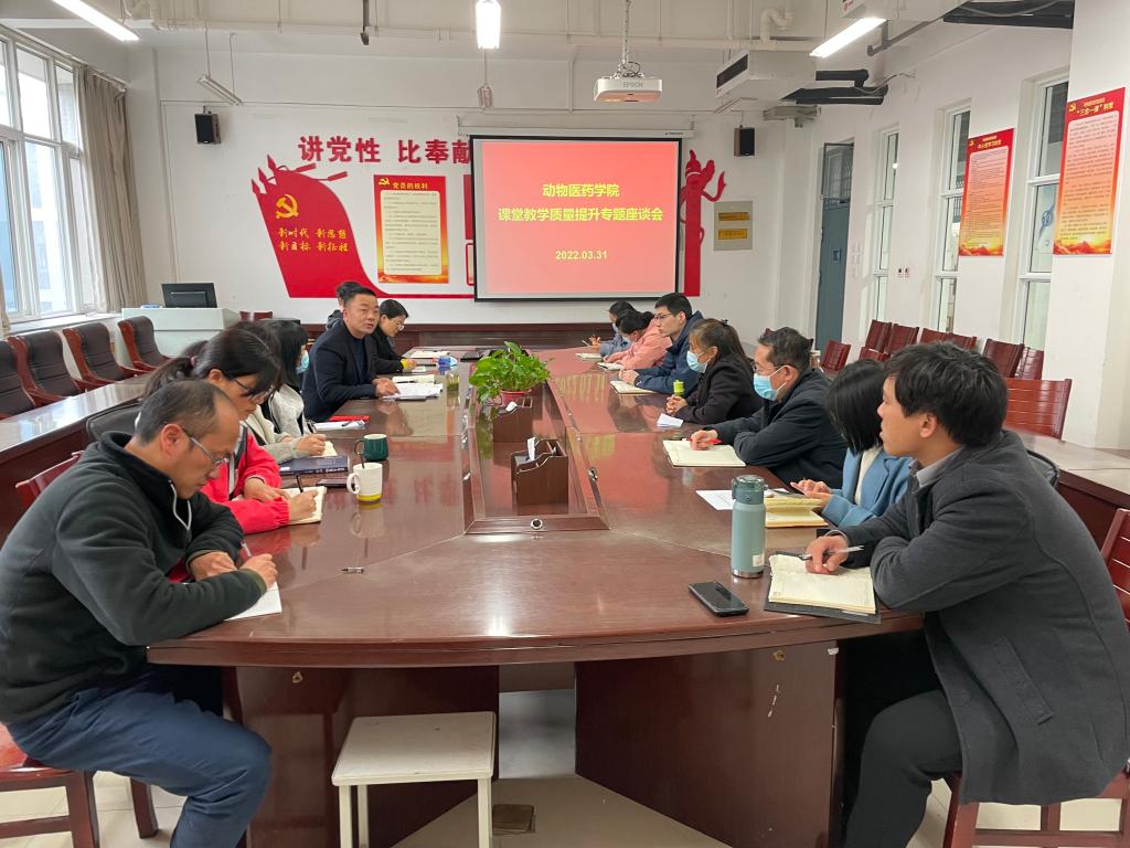 3月31日下午,动物医药学院在龙子湖校区善知楼C401召开“课堂教学质量提升年”专题座谈会。动物医药学院副院长汤法银,教学办主任吕玉金,各教研室主任及部分教师代表参加座谈会。