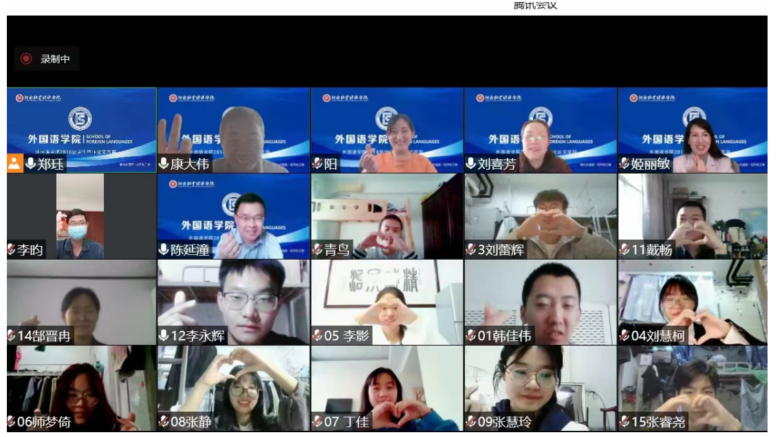 广大教师精诚合作,在云端进行4次三级教学观摩课;老师们主动联系进行听评课活动,积极准备学校教学技能竞赛;组织教师参加3次线上学术研讨会议,在教科研方面获得提升。与此同时,学院组织9000多名学生参加为期7天的“讯飞杯英语口语大赛”,极大地丰富了疫情特殊时期新葡萄官网学生的学习形式;组织172名本科学生进行毕业论文线上答辩,顺利完成“毕业大考”,答辩结束后,学生集体比爱心,向老师向母校表达了培育感激之情。