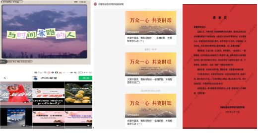 在抗疫的困难时期,外国语学院成立由副院长巩坚、郑珏、姬丽敏、崔海飞等老师组成的新媒体工作组,用先进的事迹激励人,凝聚抗疫同心,坚定必胜信心。学院微信公众号一篇篇推文,歌颂着师生同心抗疫,校友慷概捐助的感人事迹;手机镜头捕捉的一个个瞬间,记录着党员先锋岗、志愿者的无私奉献;微信朋友圈的一条条更新,传递着师生众志成城,共克时艰的信心和决心……这些文字、图片、视频真实反映我院积极乐观、知难而上的良好院风,获得了社会各界的关注和赞许;这些文字、图片、视频成为鲜活的课程思政元素,老师们将其与教学内容有机结合,用身边人、身边事传递正能量,同时提升了学生用英语讲好抗疫故事,向世界传递中国精神的能力。