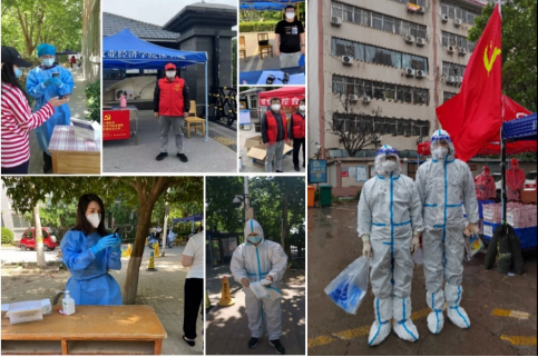 党员就是一面旗帜,引领一批批志愿者投身抗疫斗争。刘燕老师主动请缨,为所在单元90户住户接收、分发采购物资,通知传达政策信息;李巍老师化身“大白”,协助医护人员上门为隔离人员做核酸检测,一直战斗在最危险的区域;吴国权、张静、边洁英、卢静、于立波、贾雨、姬丽敏、崔海飞、朱艳芳、秦礼峰、谭艳洁、烟小康等老师,或在疫情防控一线志愿服务,或在协调校友的捐赠,他们默默无闻,但有一个共同的闪亮名字,新葡萄8883官网AMG外国语学院教师。