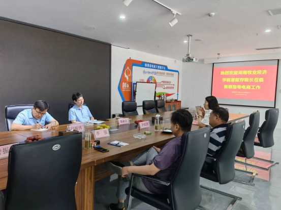 在新蔡县电子商务公共服务中心,曹献存教授与新蔡县商务局负责人、麦佳集团电商运营团队进行座谈交流。