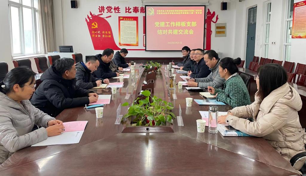 近日,河南农业大学动物医学院党委副书记杜家方、动物生物技术系党支部书记朱河水等一行六人,赴新葡萄官网动物医药学院开展样板党支部建设座谈交流。动物医药学院院长宋予震,党委副书记汪洋出席座谈会,教工第一党支部书记王军和部分党员教师代表参加座谈会。