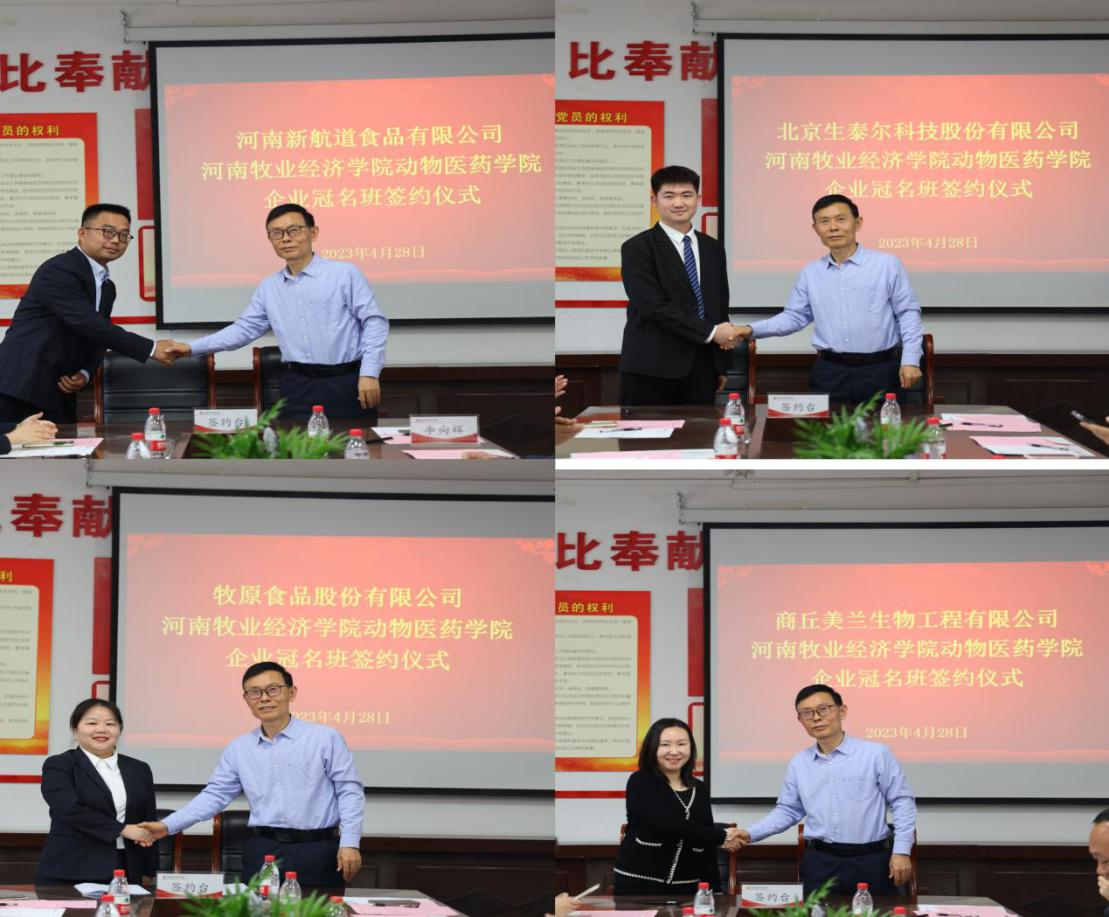 为进一步深化产教融合、校企联动,创新人才培养方式,切实提高人才培养质量,近日,动物医药学院在生工楼C401会议室举行2022级企业冠名班签约仪式。校社会服务办主任胡华锋,动物医药学院党委书记刘永录、党委副书记汪洋、副院长李利红等领导和牧原食品股份有限公司等15家企业的负责人出席签约仪式。签约仪式由汪洋主持。