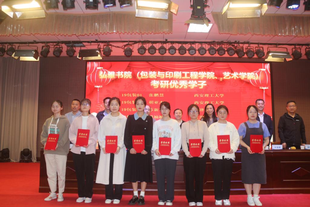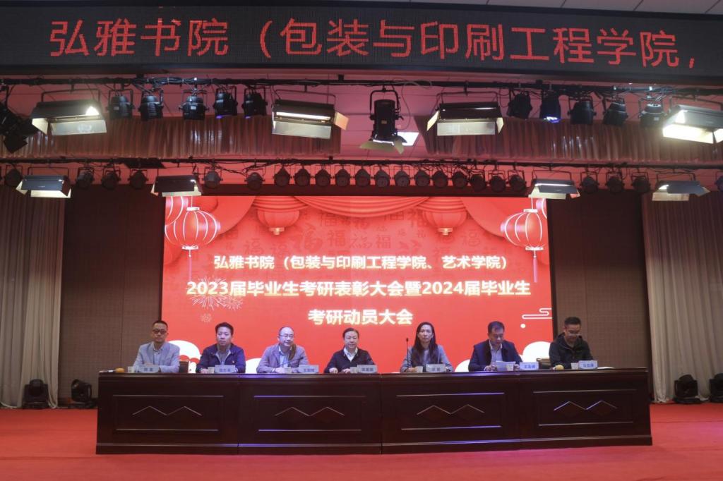 为表彰取得优异成绩的2023届考研学生,激发2024届考研学子的积极性,推动学风建设,进一步提升双院协同育人质量,近日,弘雅书院、包装与印刷工程学院和艺术学院在龙子湖大学生活动中心四楼举办2023届毕业生考研表彰大会暨2024届考研动员大会。弘雅书院党委书记田景丽,艺术学院党委书记王国辉,弘雅书院院长王友峰,包装与印刷工程学院院长张岩等三院领导班子成员、书院全体育人导师及2023届毕业生考研学生代表和2020级各专业学生代表共同参会,会议由王友峰主持。