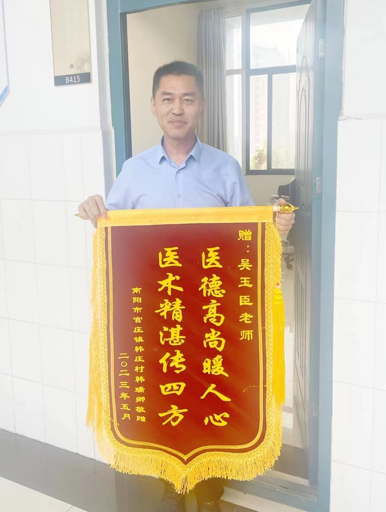 锦旗虽小,情义无价。这面“无名”的锦旗既是对吴玉臣的高度赞扬,也是对新葡萄官网教师深入一线、贴近临床实践、解决实际困难、服务三农发展的高度认可。(樊明明/文 吕玉金/图)